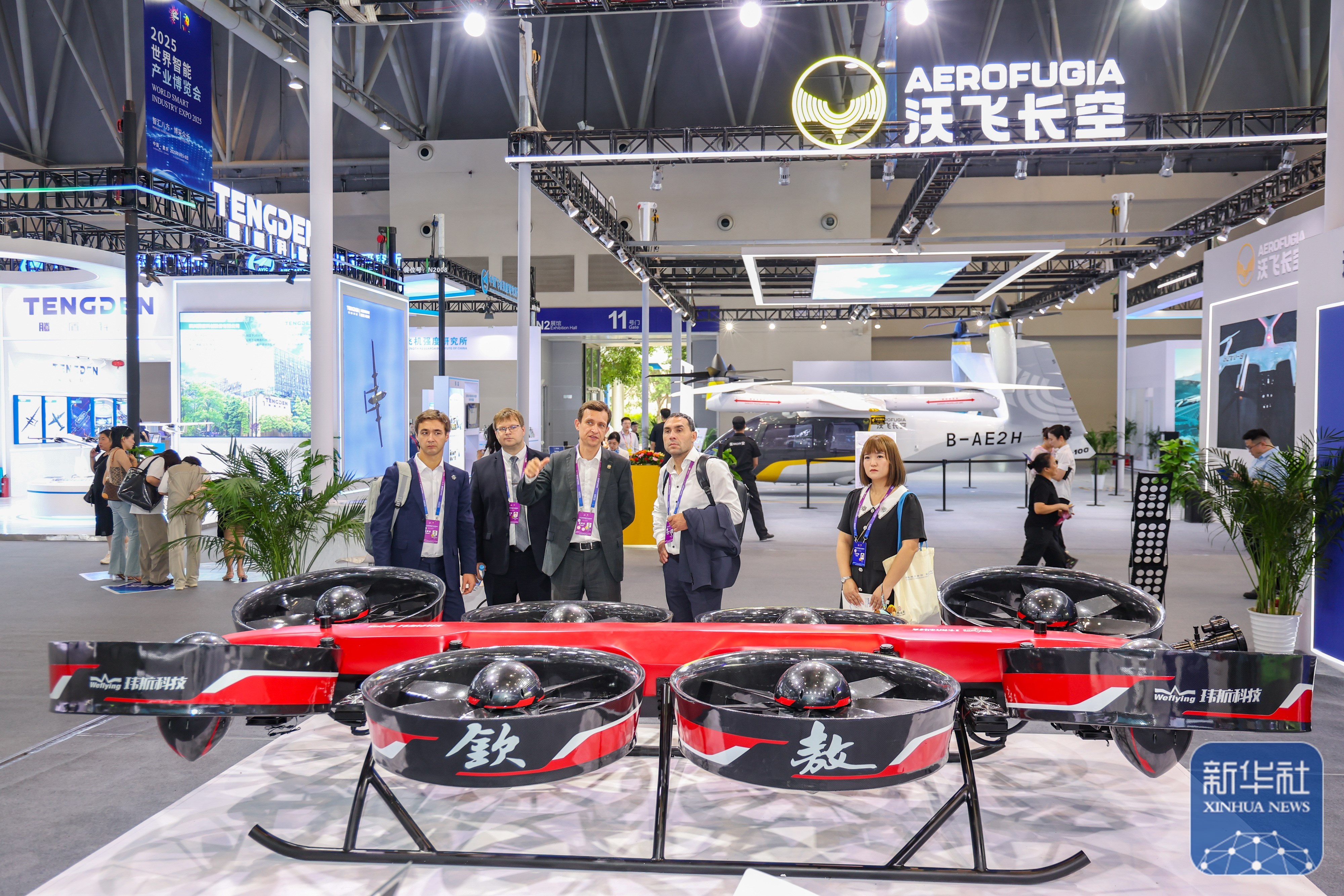↑ 9月5日,观众在2025世界智能产业博览会上参观电动垂直起降飞行器。