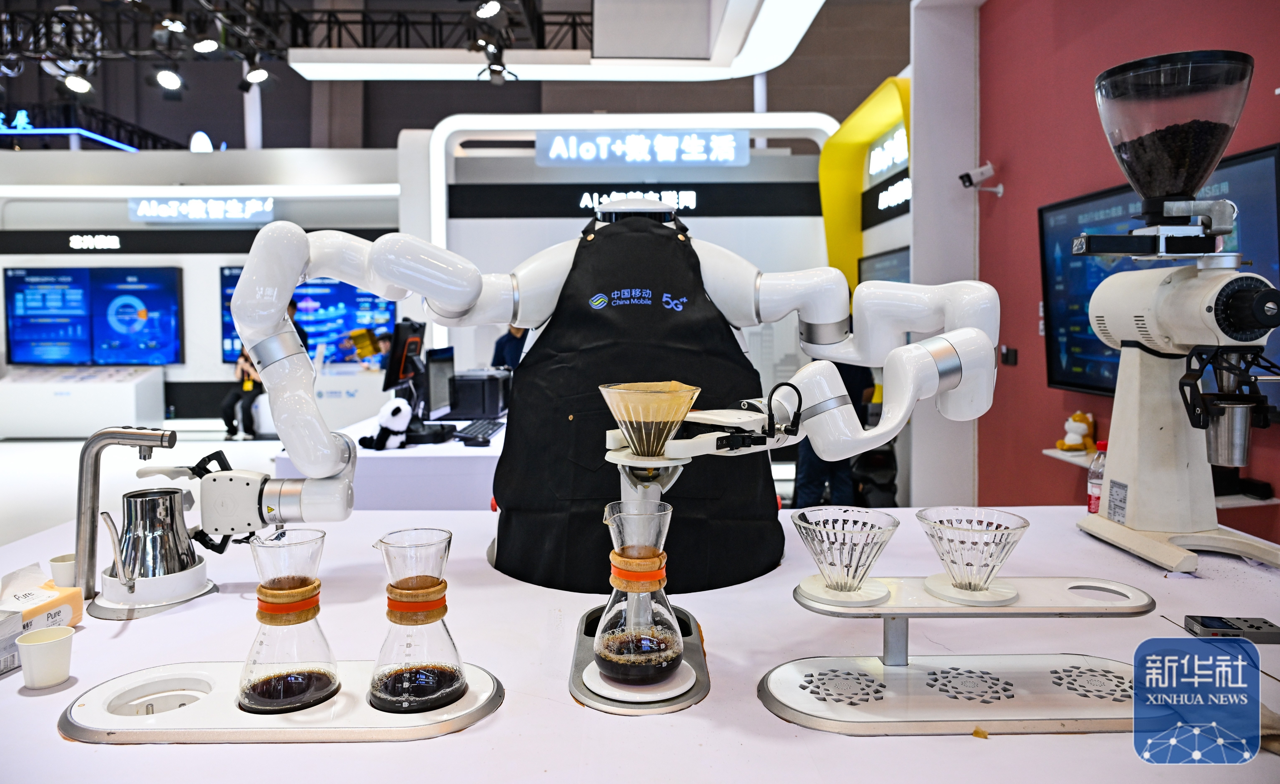 ↑ 这是9月5日在2025世界智能产业博览会中国移动展厅拍摄的“咖啡机器人”。